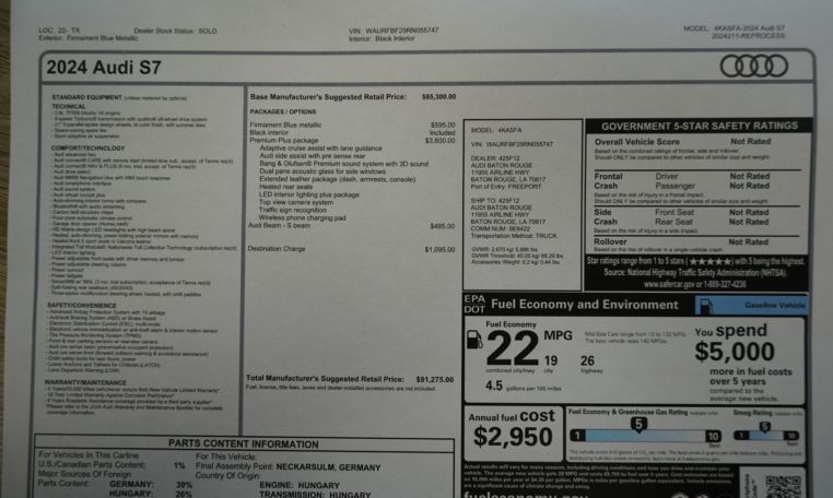 2024 Audi S7 with Premium Plus Package and just 13,390 miles. This luxury sport sedan delivers top-tier performance, advanced tech, and sleek styling. Priced $15,000 below original MSRP!!!